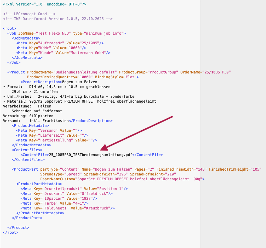 Innerhalb dieser XML werden alle relevanten Informationen wie z.B. auch der Name der zu prüfenden und weiterzuverarbeitenden PDF-Datei übermittelt.