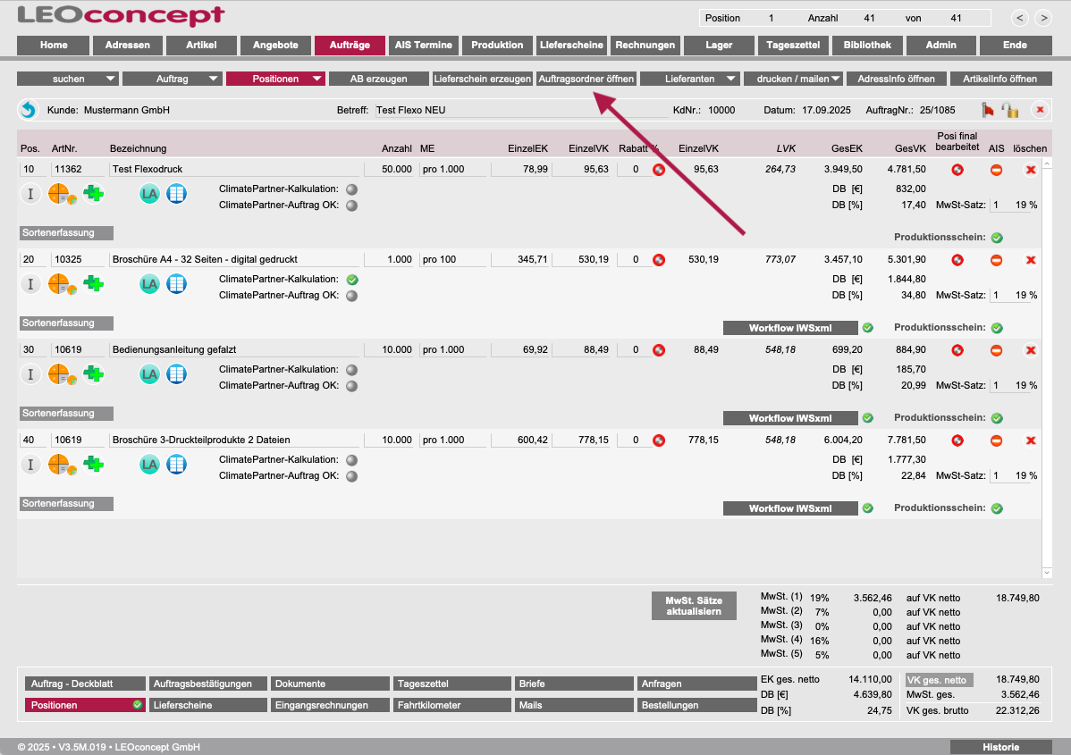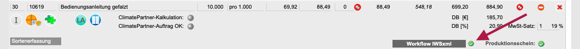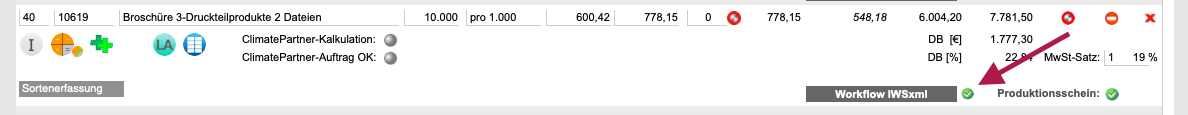 • Knopf »Workflow IWSxml« in den Auftragspositionen