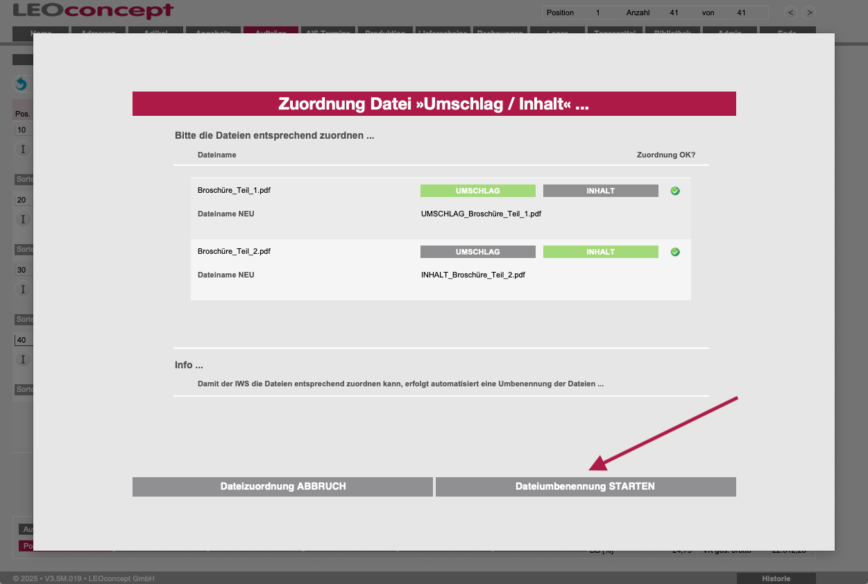 Darüber hinaus erkennt man die eindeutige Zuordnung der Druckteilprodukte zu den entsprechenden - an den IWS übergebenen - PDFs.